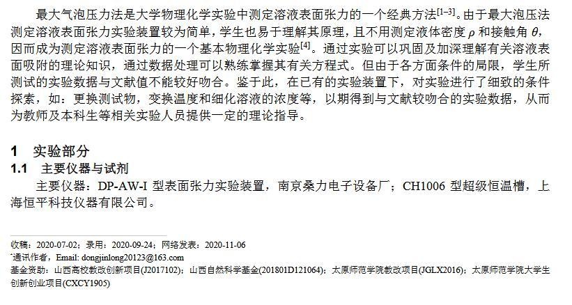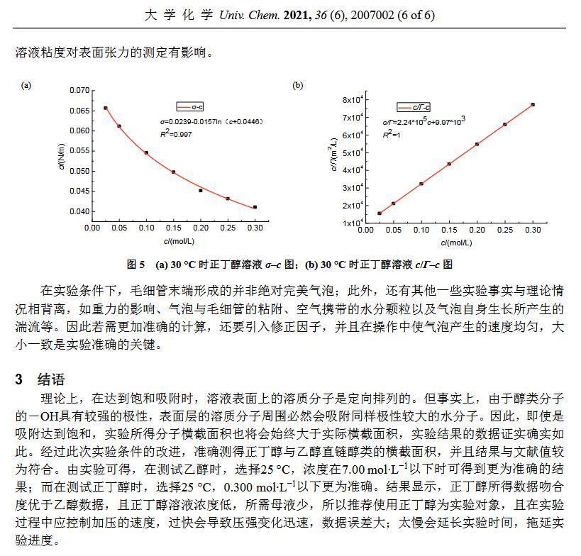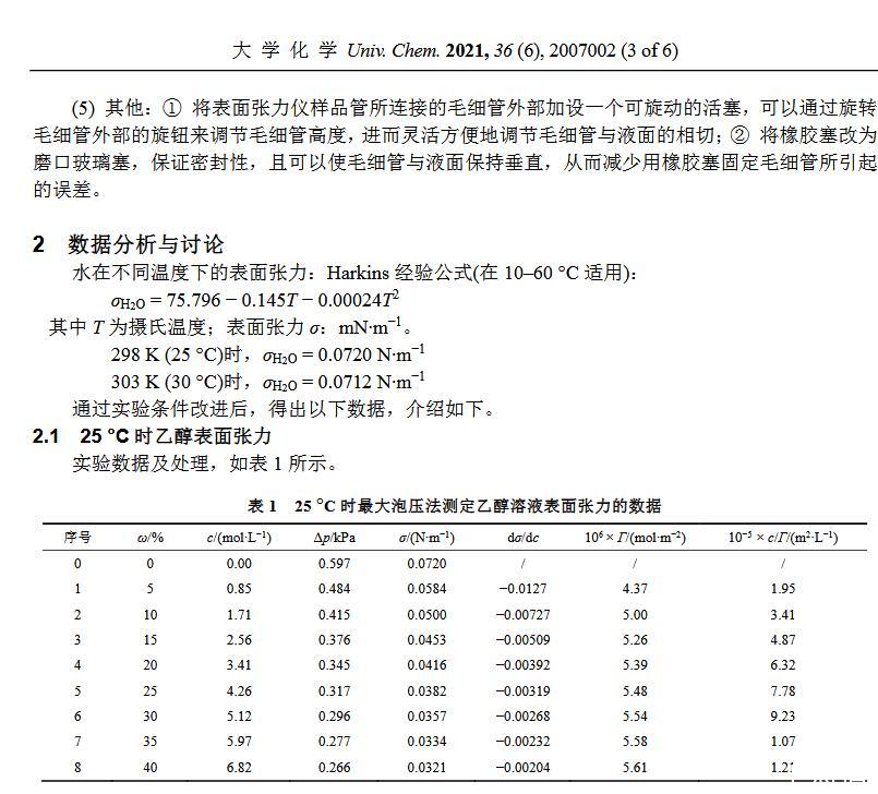 最大泡壓法測定溶液表面張力實(shí)驗(yàn)條件的優(yōu)化