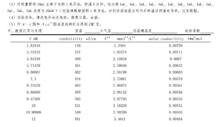 表面張力法和電導法對比測定表面活性劑臨界膠束濃度