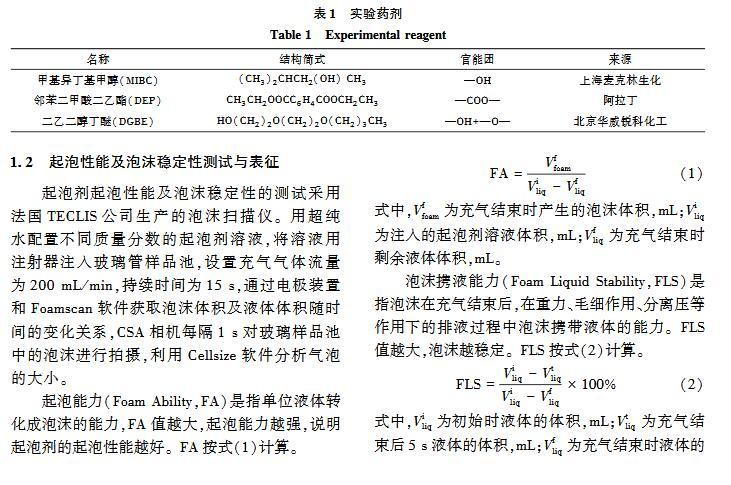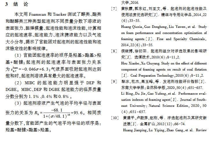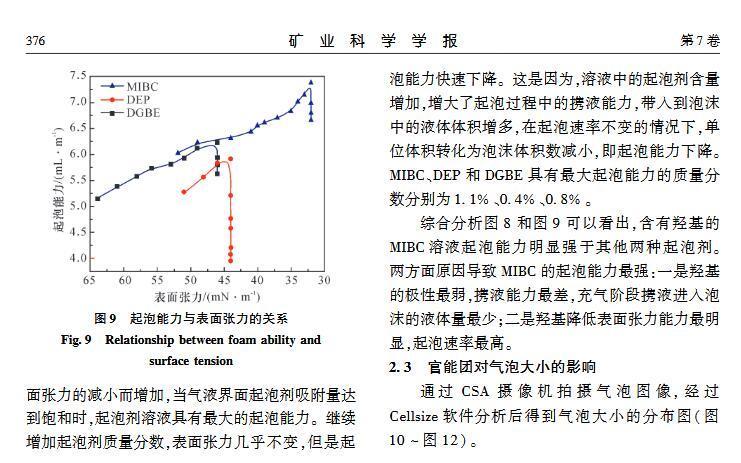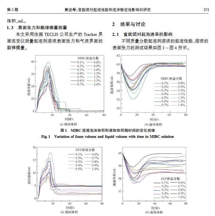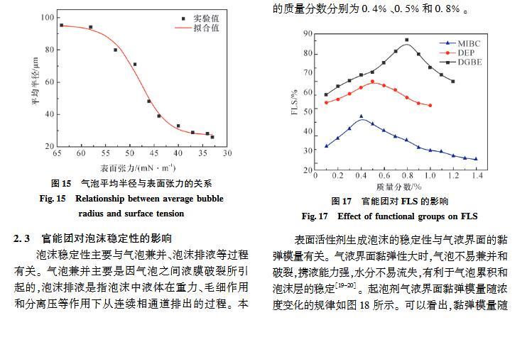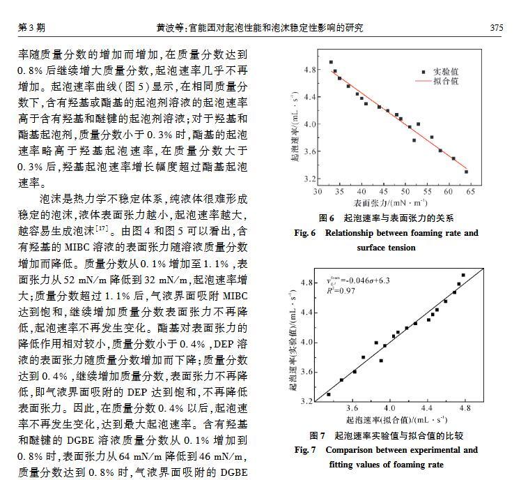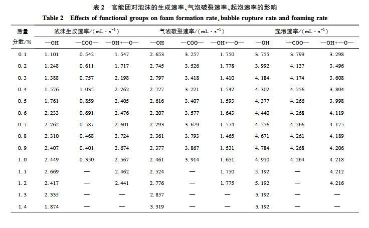 官能團(tuán)對起泡性能和泡沫穩(wěn)定性影響的研究