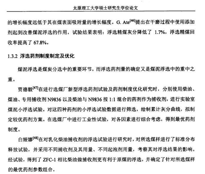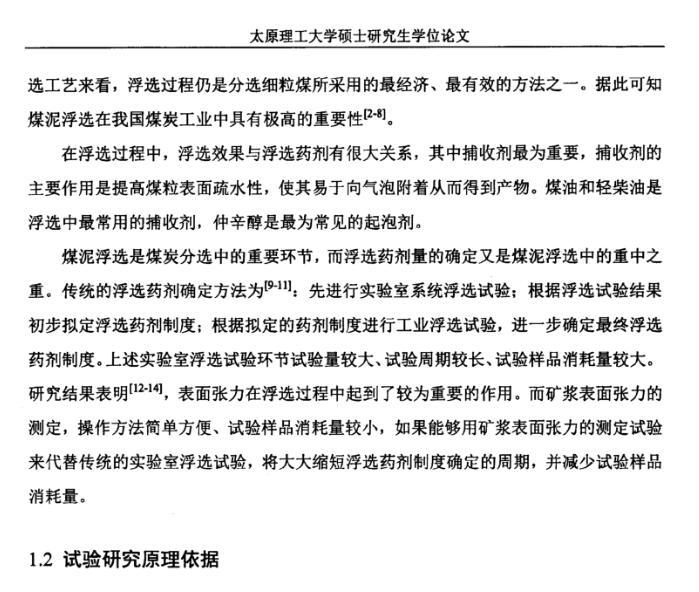 為研究浮選效果與礦漿表面張力之間的關系,對-0.5mm的平朔弱粘煤、馬蘭焦煤和晉城無煙煤進行了浮選試驗,研究表明:煤油或仲辛醇用量適當時,隨著藥劑用量的增加,礦漿表面張力降低,可燃體回收率和精煤灰分升高,三者在同一藥劑量時達到極值點,并在相同的藥劑量范圍內維持在極值點附近;煤油或仲辛醇用量過大時,隨著藥劑用量的增加,礦漿表面張力回升,可燃體回收率和精煤灰分回落。這一結果對利用礦漿表面張力來指導浮選藥劑制度、協助在線控制浮選可燃體回收率和精煤灰分有著重要意義。