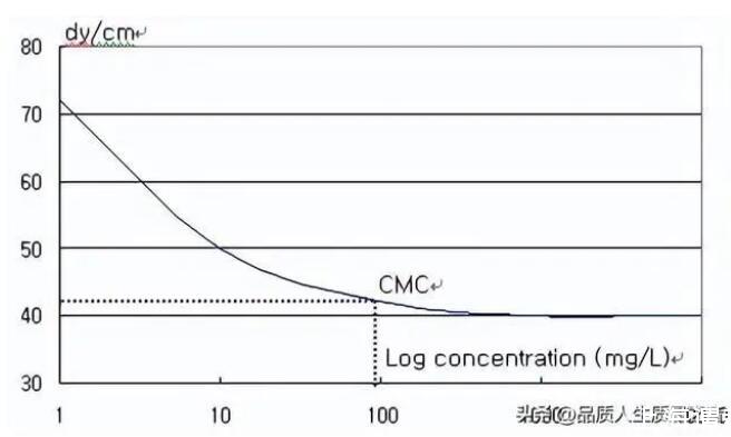 而電鍍液的潤濕性是可由液體的表面張力來做控制及分析,由表面張力的理論得知,若電鍍液的表面張力愈小,表示電鍍液的內(nèi)聚力愈小、愈容易滲入細小的縫隙裡面、也愈容易於被鍍物表面潤濕讓金屬離子鍍上去。因此為了使電鍍液的表面張力降低或是增加電鍍後的品質(zhì),通常於電鍍液中會加入有機添加劑(光澤劑,結(jié)構(gòu)改良劑,潤濕劑..等),其中潤濕劑即是在使鍍液表面張力降低的作用。然而當(dāng)這類界面活性劑添加超過CMC點後,表面張力即不再改變(如下圖)。此時過量的添加不但沒達到效果反而增加了生產(chǎn)成本。因此CMC點便可作為電鍍液的監(jiān)控標準值,來決定何時添加及添加的量。