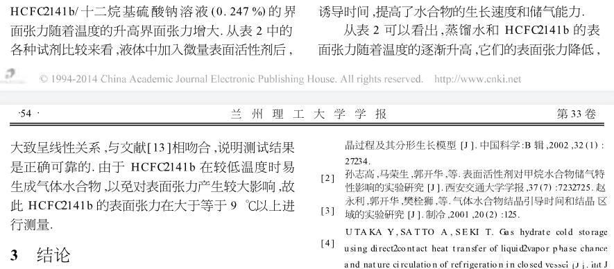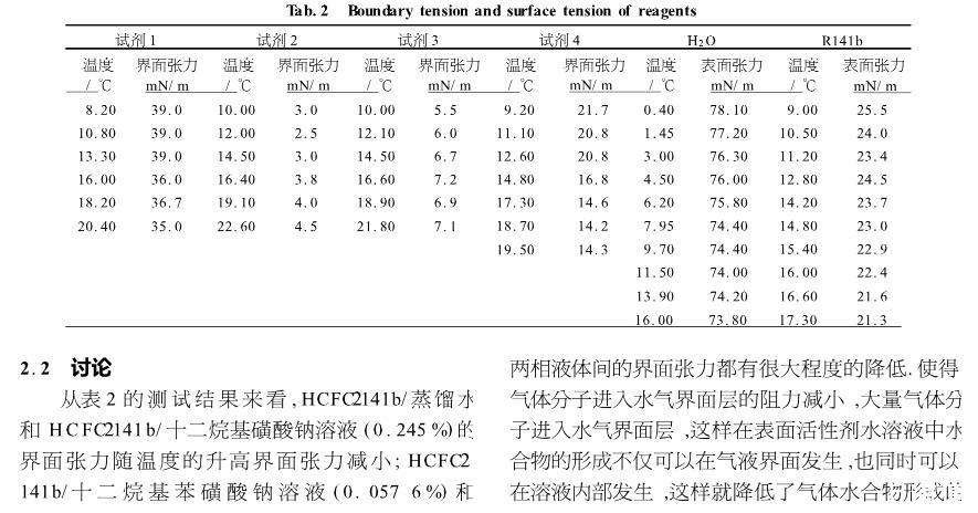 【摘要】:表面活性劑能夠減小液體的表面張力以及兩相液體間的界面張力,界面張力的減小有利于促進(jìn)氣體水合物快速形成和提高水合物儲(chǔ)氣能力.為定量研究?jī)上嘁后w間界面張力對(duì)氣體水合物形成的影響,用界面張力儀實(shí)測(cè)不同溫度時(shí)蒸餾水、HCFC-141b的表面張力以及HCFC-141b/蒸餾水、HCFC-141b/十二烷基硫酸鈉溶液(0.247%)、HCFC-141b/十二烷基磺酸鈉溶液(0.245%)、HCFC-141b/十二烷基苯磺酸鈉溶液(0.057 6%)的界面張力,測(cè)試結(jié)果表明,表面活性劑對(duì)降低兩相液體間界面張力的作用十分明顯,其中十二烷基苯磺酸鈉溶液對(duì)降低界面張力最為突出,降到HCFC-141b/蒸餾水界面張力值的9%左右,為定量研究氣體水合物等優(yōu)選表面活性劑提供了科學(xué)的依據(jù)。