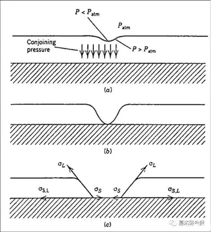 處于液體體相內(nèi)的任一分子受到其周圍四面八方分子的作用是相等的,可以抵消,故在液體內(nèi)部分子的移動(dòng)無需做功。處于液體表面上的分子受到液體內(nèi)部分子的作用力遠(yuǎn)大于另一側(cè)氣體(或蒸氣)分子的作用力,因而液體表面分子有自動(dòng)向液體內(nèi)部遷移的趨勢(shì),這種趨勢(shì)的表現(xiàn)之一是液體表面自動(dòng)縮小,表現(xiàn)之二為欲擴(kuò)大表面需外界做功。表面張力的力學(xué)定義是作用于液體表面上任何部分單位長度直線上的收縮力,力的方向是與該直線垂直并與液面相切,單位為mN·m-1。