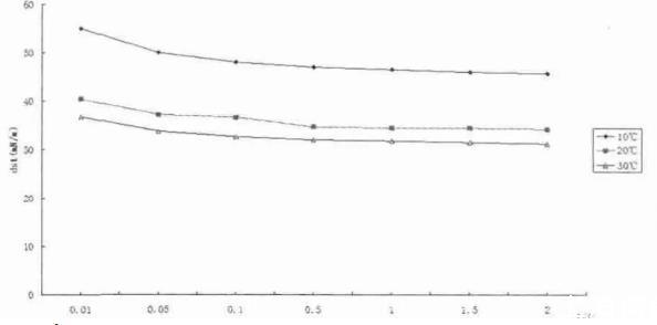 測量不同溫度下OP-10在質量分數濃度為0.1%的動態表面張力dst,分析溫度對dst的影響。