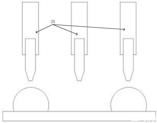 步驟S3:通過印刷機(jī)構(gòu)將摻入碳粉并通入正電荷的UV油墨鋪滿在紙張上,由于紙張上已覆蓋有固化的UV涂層,因此UV油墨在紙張上仍可自由移動,此時通過計算機(jī)處理印刷圖案,進(jìn)而控制印刷機(jī)構(gòu)向指定金屬探針輸送負(fù)電荷,其余金屬探針輸送正電荷,當(dāng)金屬探針接觸帶正電荷UV油墨時,通過異電荷相互吸附的原理,UV油墨將向金屬探針聚攏;其余探針通過同電荷相互排斥的原理,UV油墨將向金屬探針反方向逃逸,待金屬探針收回,UV油墨將因表面張力短時間內(nèi)無法流平,再對紙張表層所有UV油墨進(jìn)行最終固化;